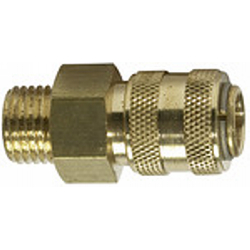 Schnellverschlusskupplung NW 5 »connect line«, MS blank, G 3/8 AG, Betriebsdr. 0 - 35 bar, Mediums-/Umgebungstemp. -20°C bis 100°C. Preiswerte, einseitig absperrende Einhand-Schnellverschlusskupplung mit kleinen Baumaßen und großem Durchgang bei geringem Druckabfall. Um Verletzungen oder den Peitschenhiebeffekt zu vermeiden, empfehlen wir den Stecknippel beim Entkuppeln mit einer Hand festzuhalten.