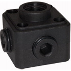 Luftverteilerdose, für Serie »speedfit«, Kunststoff, schwarz, 5 x G 1/2 IG, mit 3 selbstdichtenden Kunststoffschrauben. Mit 5 x G 1/2 Innengewinde zum Einschrauben von Adaptern und mit 3 selbstdichtenden Kunststoffschrauben für die Gewindeöffnungen sowie G 1/2 für eine Schnellkupplung.