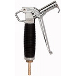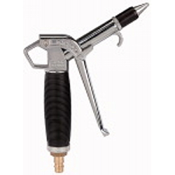 Hochleistungs-Blaspistole »Typhoon« mit Standarddüse, Aluminium, Betriebstemperatur -10 °C bis 50 °C, PN max. 10 bar, G 1/4 innen. Stufenlos regelbare, leichtgewichtige und ergonomisch hervorragende Hochleistungs-Blaspistole mit ausgesprochen starker Blasleistung. Gegenüber herkömmlichen Standardpistolen hat die »Typhoon« eine ca. 3-fach höhere Blasleistung und liegt auch bei voller Druckbeaufschlagung leicht und sicher in der Hand. Zum Ausblasen von schwer zugänglichen Stellen sind Verlängerungsrohre lieferbar.