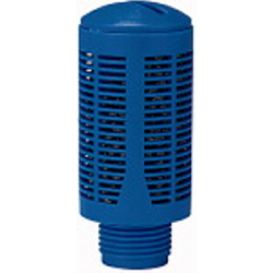 Kunststoff-Schalldämpfer, Stahlnetz- und Baumwollstreifenfüllung, G 3/4, Betriebsdruck max. 12 bar, Betriebstemp. -20 °C bis 70 °C. Durch die Stahlnetz- und Baumwollstreifenfüllung entweicht nur Luft. Verunreinigungen werden zurückgehalten. Höherer Geräuschdämpfungsgrad.