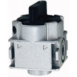 Kugelhahn 3/2-Wege »variobloc«, abschließbar, mit Entlüftung und Schalldämpfer, BG 1, G 3/8, Betriebsdruck max. 25 bar. Als Hauptabsperrelement vor allem zum Anflanschen am Beginn einer variobloc-Wartungseinheit. Mit Entlüftung und Schalldämpfer. Abschließbar mit handelsüblichem Vorhängeschloss.