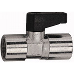 Mini-Kugelhahn mit Drehgriff, MS vern., Mediums-/ Umgebungstemp. -10 °C bis 80 °C, R/Rp 3/8 AG/IG, DN 8, SW 18, PN max. 10 bar.