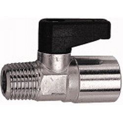 Mini-Kugelhahn mit Drehgriff, MS vern., Mediums-/ Umgebungstemp. -10 °C bis 80 °C, R/Rp 1/8 AG/IG, DN 5,5, SW 14, PN max. 10 bar.