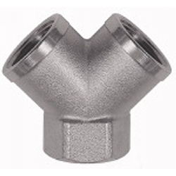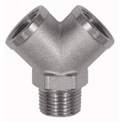 Verteiler, 2fach, Innengewinde G 3/8, 2 x Innengewinde G 3/8, Messing blank, Betriebsdruck max. 60 bar, Temp. max. 150 °C. Verteiler, 2fach und 3fach, Messing blank