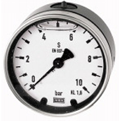 Glyzerinmano., Metallgehäuse, Einfachskala in bar, Anschluss hinten exzentrisch, G 1/2, Gütekl. 1,0, Messber. 0 - 1,6 bar, Ø 100. Rohrfedermanometer mit Glyzerinfüllung.