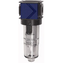 Aktivkohlefilter »variobloc« mit Polycarbonatbehälter, 0,003 mg/m³, BG 2, G 1, PE max. 16 bar, Med.-Umgebungstemp. max. 50 °C. Der Aktivkohlefilter dient zur Absorbierung von Öldampf aus der Druckluft. Die eingehende Druckluft sollte trocken und frei von Verunreinigungen sein (Vorschaltung eines Mikrofilters wird unbedingt empfohlen).