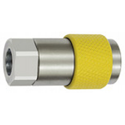 Unverwechselbare Dreh-Sicherheitskupplung NW 6, ISO 6150 C, Stahl, 2-stufig, G 1/2 IG, gelb, max. 25 bar, Temp. -15 °C bis 200 °C. Hochwertige, robuste und langlebige, mit einer Hand bedienbare Dreh-Sicherheitskupplung. Durch Eindrücken des Stecknippels, bis dieser hörbar rastet, wird eine sichere Verbindung hergestellt. Das Entkuppeln erfolgt über eine Linksdrehung der Hülse. Hierbei wird der anstehende Druck in der Kupplung und in der Leitung entlüftet, jedoch wird der Stecknippel über eine Sicherheitsklinke nicht komplett freigegeben. Erst nach einer Rechtsdrehung der Hülse kann der Stecknippel herausgezogen werden. Durch die Farb- und Formkodierung von Kupplung und Stecknippel, ist ein Einkuppeln nur innerhalb der gleichen Farben möglich.