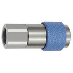 Unverwechselbare Dreh-Sicherheitskupplung NW 6, ISO 6150 C, Stahl, 2-stufig, G 1/2 IG, blau, max. 25 bar, Temp. -15 °C bis 200 °C. Hochwertige, robuste und langlebige, mit einer Hand bedienbare Dreh-Sicherheitskupplung. Durch Eindrücken des Stecknippels, bis dieser hörbar rastet, wird eine sichere Verbindung hergestellt. Das Entkuppeln erfolgt über eine Linksdrehung der Hülse. Hierbei wird der anstehende Druck in der Kupplung und in der Leitung entlüftet, jedoch wird der Stecknippel über eine Sicherheitsklinke nicht komplett freigegeben. Erst nach einer Rechtsdrehung der Hülse kann der Stecknippel herausgezogen werden. Durch die Farb- und Formkodierung von Kupplung und Stecknippel, ist ein Einkuppeln nur innerhalb der gleichen Farben möglich.