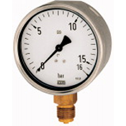 Mano. in Robustausf. mit CrNi-Stahlgeh., Anschluss radial unten, G 1/2, Typ 212.20, Güteklasse 1,0, Messber. 0 - 1,6 bar, Ø 100. Rohrfedermanometer in Robustausführung.