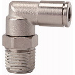L-Steckverschraubung »metallica«, drehbar, R 1/8 a., für Schlauch-Außen-Ø 4 mm, Arbeitsdruck max. 16 bar, Messing vernickelt. Schnellsteckverbindungen komplett aus Messing vernickelt. Die Teile mit zylindrischem Gewinde sind mit einem FKM-O-Ring ausgestattet. Die konischen Gewinde sind mit der Dispersion preCOTE 5 beschichtet, so dass alle Verbindungen dieser Serie auch bei hohen Temperaturen eingesetzt werden können (Medium Druckluft).
