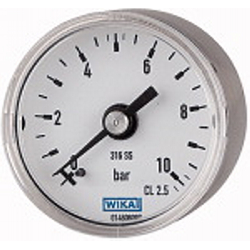 Manometer Ø 40 mm, G 1/8 rückseitig, Messbereich 0 - 10 bar, Güteklasse 2,5, Edelstahl 1.4571.
