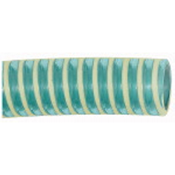 Saug-/ Druckschlauch, schwere Ausf., Temp. -15°C bis 60°C, Vakuum 0,9 bar, Schlauch-ø 103x90, PN bei 20°C max. 4 bar, Rolle à 20 m. Aus transparentem Kunststoff mit eingebetteter Stahldrahtspirale