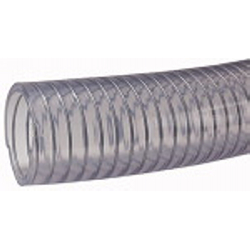 Saug-/ Druckschlauch, schwere Ausf., Temp. -15°C bis 60°C, Vakuum 0,9 bar, Schlauch-ø 62x51, PN bei 20 °C max. 5 bar, Rolle à 50 m. Aus transparentem Kunststoff mit eingebetteter Stahldrahtspirale
