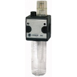 Nebelöler »multifix« mit Metallbehälter, Sichtrohr, Tropfaufsatz Metall, BG 5, G 1, PE max. 20 bar, Med.-Umgeb.temp. max. 60 °C. Proportionalöler, Öleinfüllung unter Druck ist möglich.